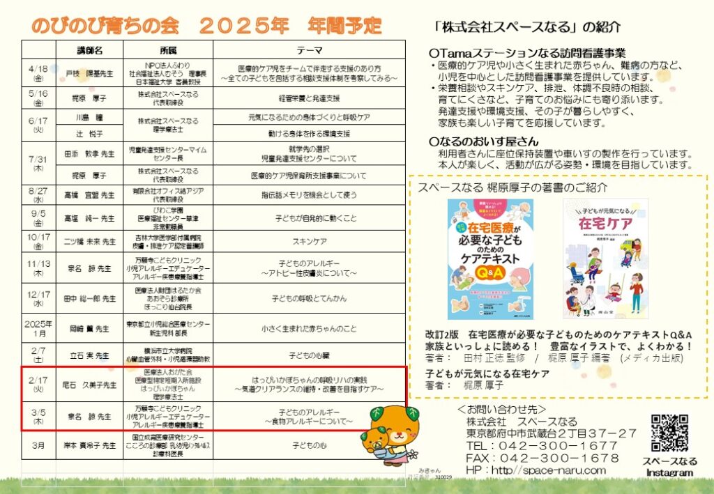 のびのび育ちの会年度後半予定を更新しました!
